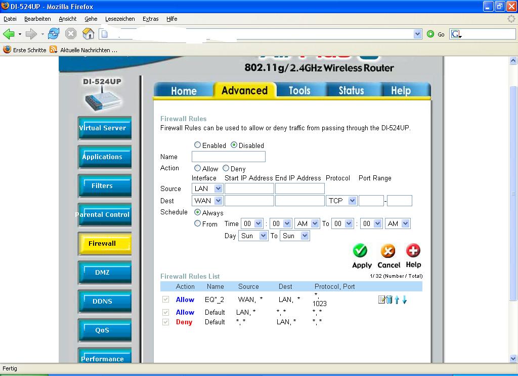 Vielleicht blockt deine Softwarefirewall auch EQ2.Als erstes wird die DMZ wieder zurückgesetzt (zum Glück hat meine Softwarefirewall einiges abgeblockt).