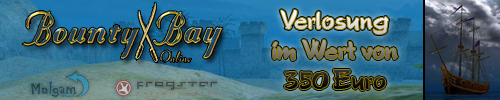 Seit Januar 2009 ist die neue Erweiterung für Bounty Bay Online, das Kolonie-Add on auf dem kostenpflichtigen und dem Free2Play Server erschienen. Sei auch du Teil dieser Community und registriere dir noch heute einen kostenlosen Account. Für den einfacheren Start verlosen wir zusammen mit Frogster Interactive Gaming 100 Starterpakete im Wert von 350 Euro! Teilnehmen kann jeder, die ersten 100 Einsendungen mit der richtigen Antworten erhalten einen Code, der dieses Paket frei schaltet.