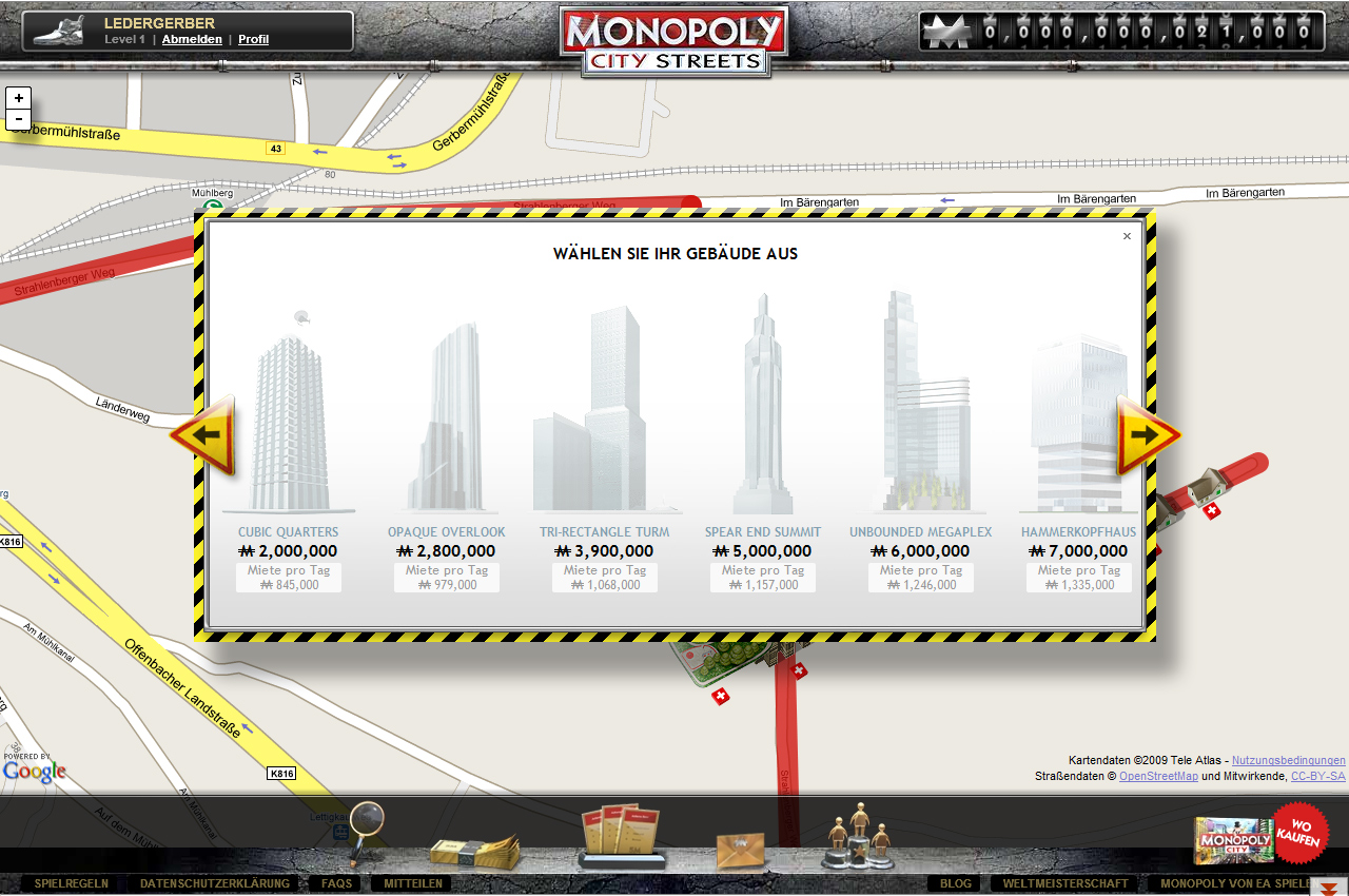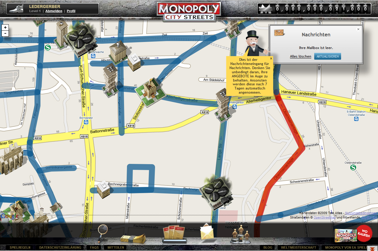Manche Investitionen zahlen sich schon nach nur ein bis zwei Tagen aus. Insgesamt vermehrt sich der Wert des Eigentums sehr stark. Das ist problematisch, wenn ein Spieler erst nach ein paar Tagen oder gar Wochen in das Spiel einsteigt. Während des Testzeitraums war Berlin, vor allem im Zentrum, schon innerhalb weniger Stunden praktisch ausverkauft. Ähnlich sieht es in anderen deutschen oder amerikanischen Metropolen aus. Nur bei kleineren Orten und auf dem Land gibt es hier und da noch eine gute Ecke, die Geld einbringen kann.