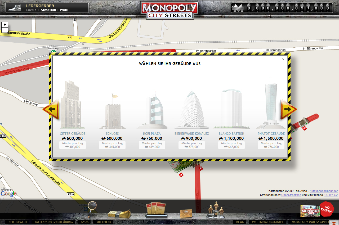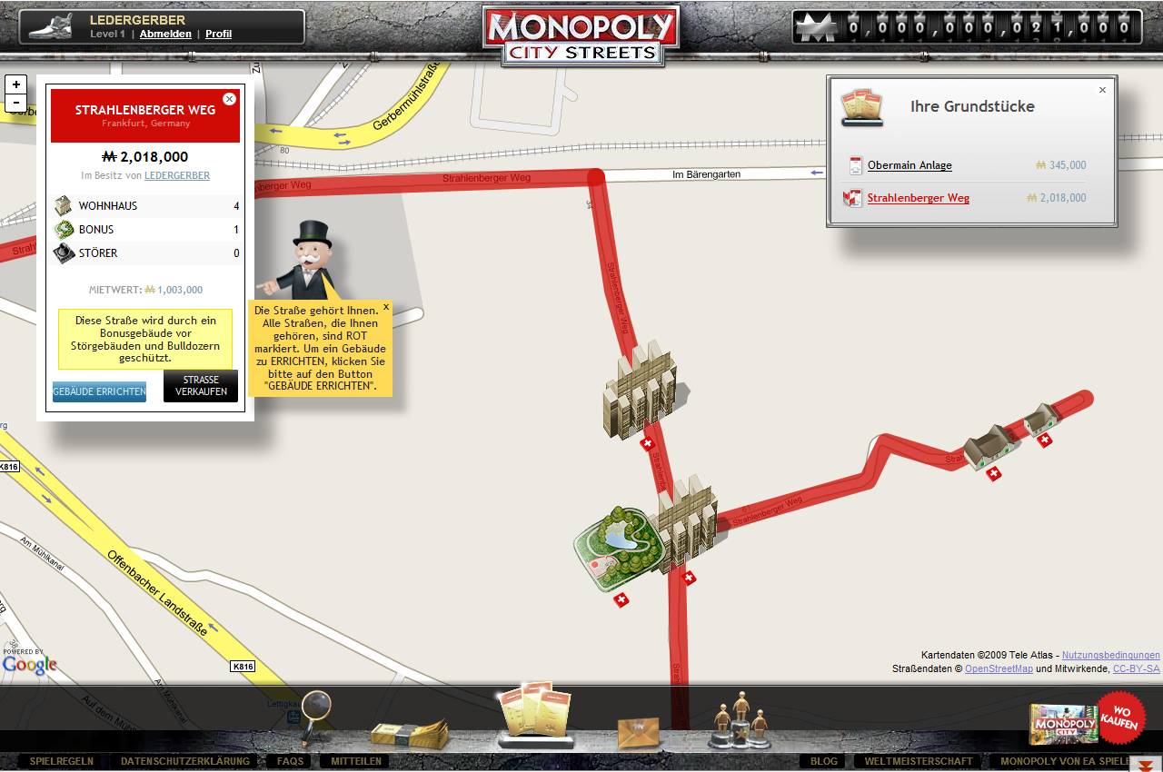 Was passiert, wenn man das Brettspiel Monopoly mit Google Maps, Tele Atlas und Openstreetmap zusammenwürfelt? Die Antwort ist Monopoly City Streets, ein Spiel, das weltweit ausgetragen wird - und eine Mischung aus Faszination und Langeweile auslöst.