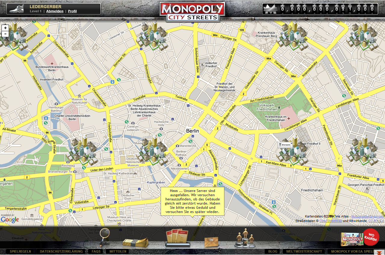 Cheater sind zwar nur selten - im Raum Berlin war zumindest kein offensichtlicher auszumachen -, aber sie nerven. Vor allem ist es unheimlich leicht zu schummeln, da nicht einmal eine E-Mail-Adresse zur Registrierung benötigt wird. Immerhin wollen die Macher des weltweit ausgetragenen Monopoly-Spiels in Zukunft etwas gegen allzu einfache Betrügereien tun. In den kommenden Tagen soll das Spiel ohnehin zurückgesetzt werden. Dann fangen alle Spieler von vorne an - hoffentlich mit etwas besserem Anti-Cheat-Verfahren. Außerdem wollen die Entwickler noch Fehler beseitigen. Glücklicherweise sind während des Tests keine kritischen Probleme aufgefallen. Allerdings hatten die Server vor allem anfangs mit dem Ansturm zu kämpfen.