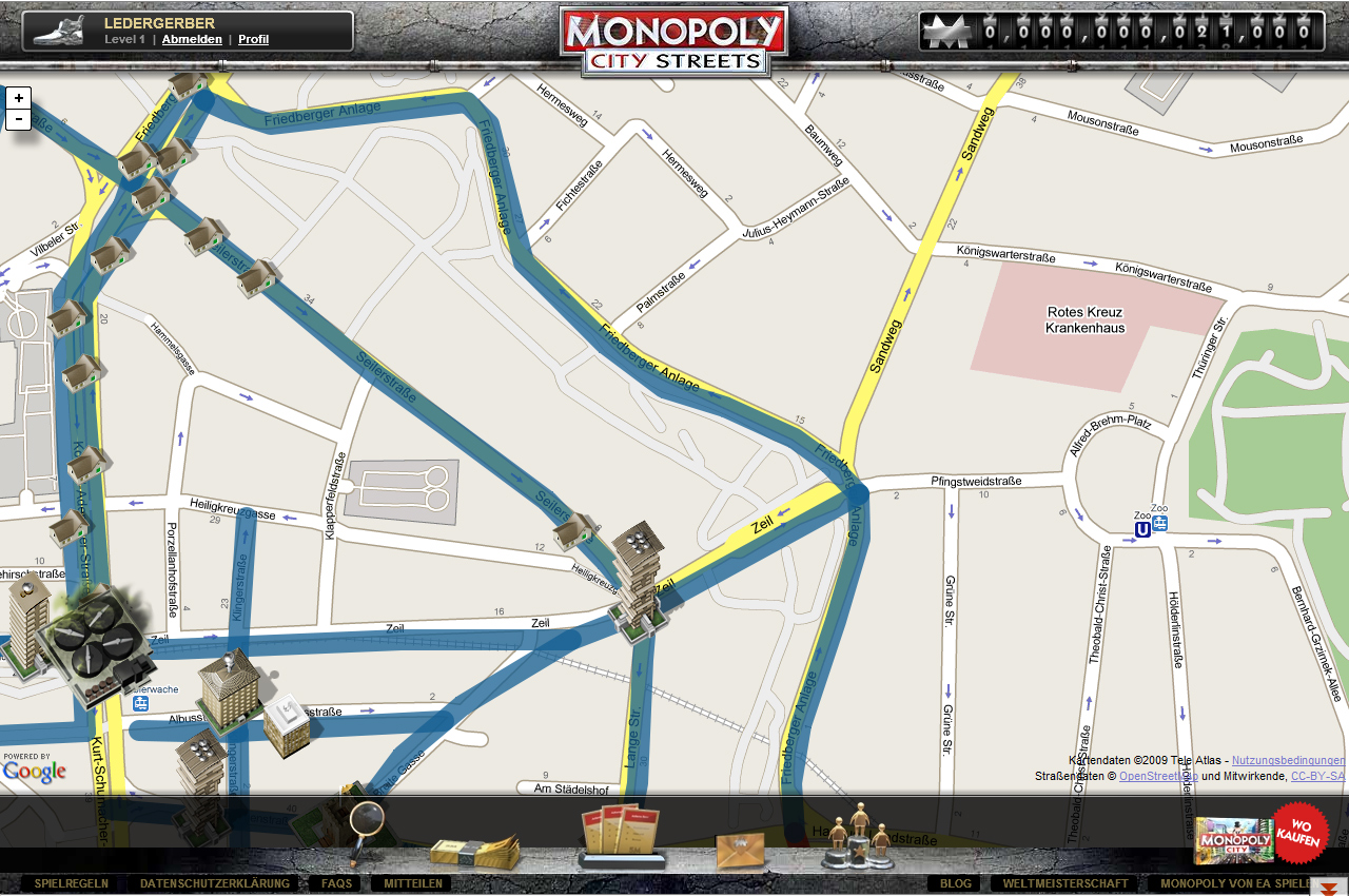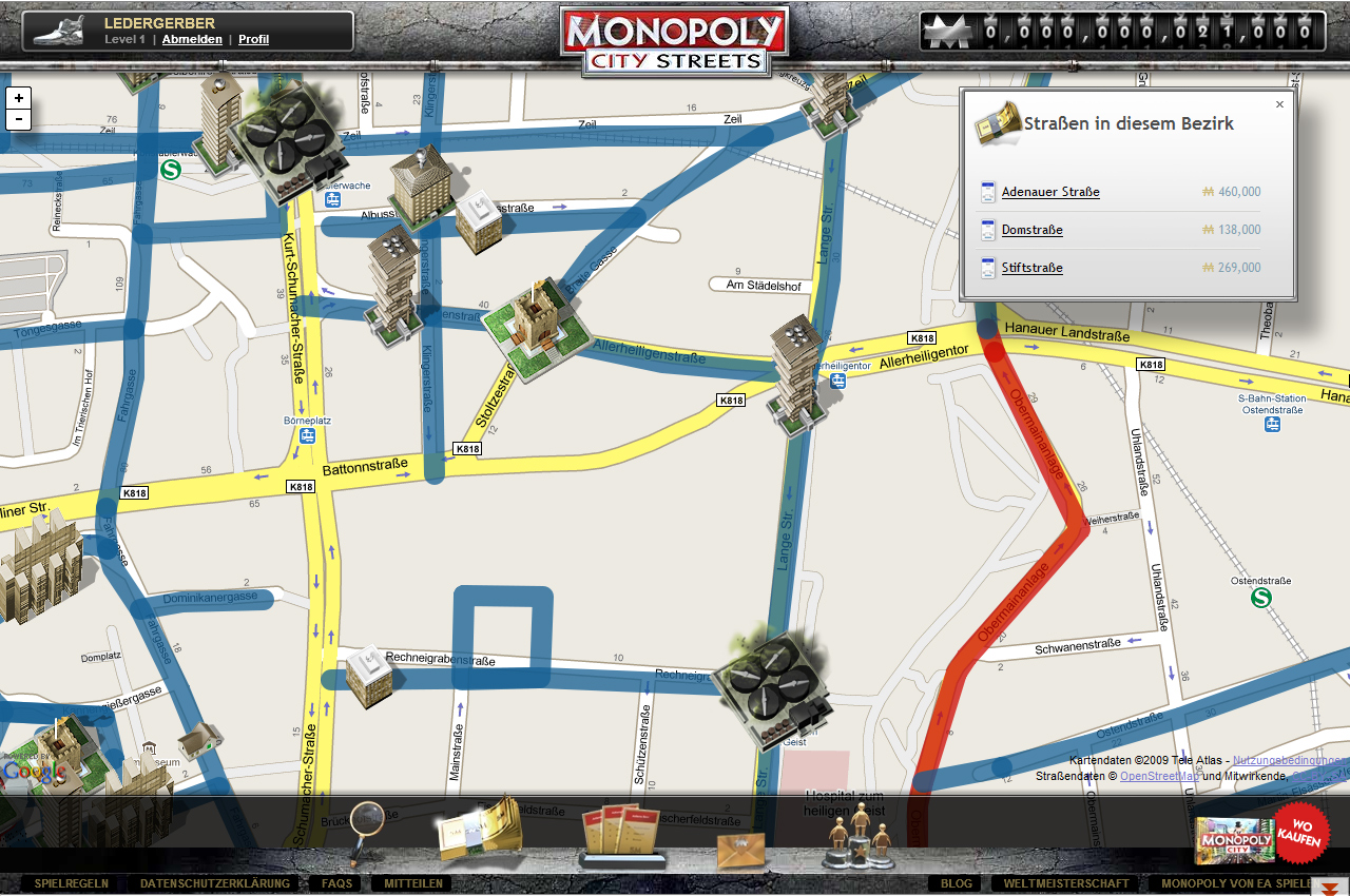 Was passiert, wenn man das Brettspiel Monopoly mit Google Maps, Tele Atlas und Openstreetmap zusammenwürfelt? Die Antwort ist Monopoly City Streets, ein Spiel, das weltweit ausgetragen wird - und eine Mischung aus Faszination und Langeweile auslöst.