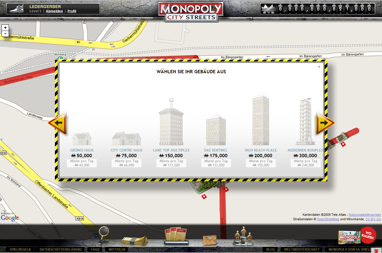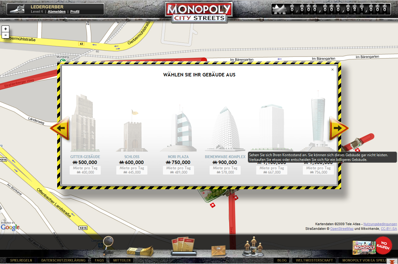 Manche Investitionen zahlen sich schon nach nur ein bis zwei Tagen aus. Insgesamt vermehrt sich der Wert des Eigentums sehr stark. Das ist problematisch, wenn ein Spieler erst nach ein paar Tagen oder gar Wochen in das Spiel einsteigt. Während des Testzeitraums war Berlin, vor allem im Zentrum, schon innerhalb weniger Stunden praktisch ausverkauft. Ähnlich sieht es in anderen deutschen oder amerikanischen Metropolen aus. Nur bei kleineren Orten und auf dem Land gibt es hier und da noch eine gute Ecke, die Geld einbringen kann.