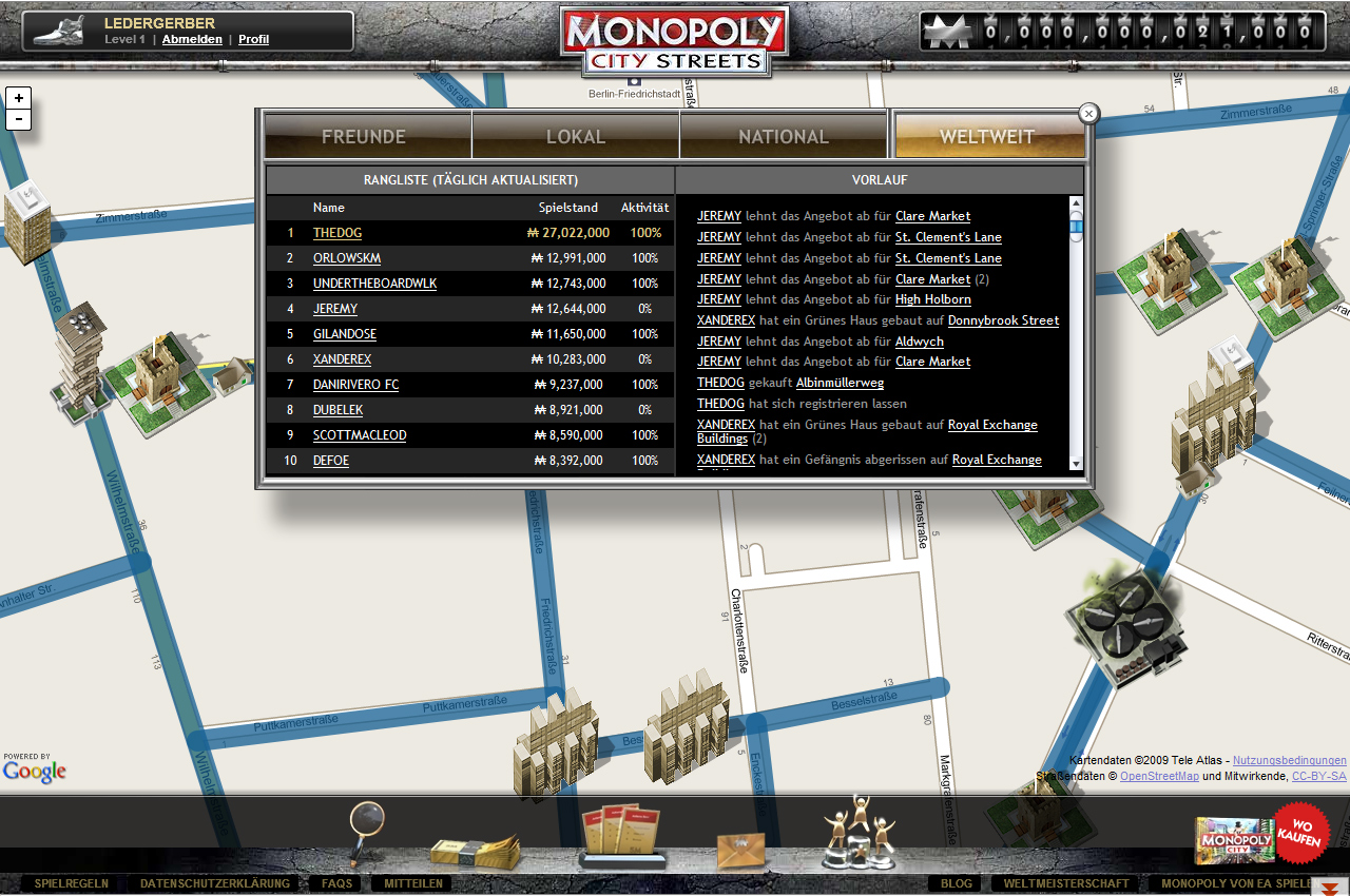 Cheater sind zwar nur selten - im Raum Berlin war zumindest kein offensichtlicher auszumachen -, aber sie nerven. Vor allem ist es unheimlich leicht zu schummeln, da nicht einmal eine E-Mail-Adresse zur Registrierung benötigt wird. Immerhin wollen die Macher des weltweit ausgetragenen Monopoly-Spiels in Zukunft etwas gegen allzu einfache Betrügereien tun. In den kommenden Tagen soll das Spiel ohnehin zurückgesetzt werden. Dann fangen alle Spieler von vorne an - hoffentlich mit etwas besserem Anti-Cheat-Verfahren. Außerdem wollen die Entwickler noch Fehler beseitigen. Glücklicherweise sind während des Tests keine kritischen Probleme aufgefallen. Allerdings hatten die Server vor allem anfangs mit dem Ansturm zu kämpfen.