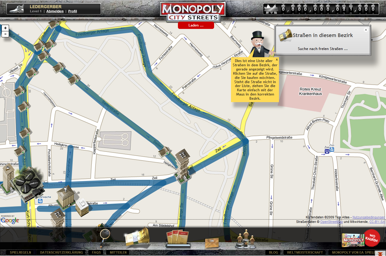 Monopoly City Streets verbindet Openstreetmap mit Google Maps